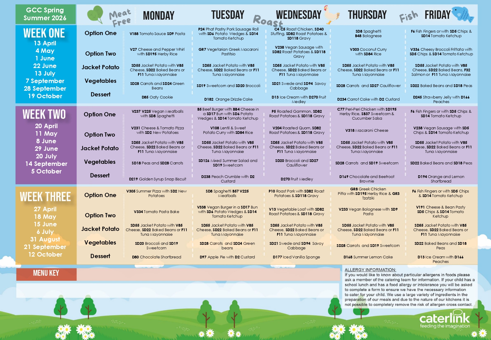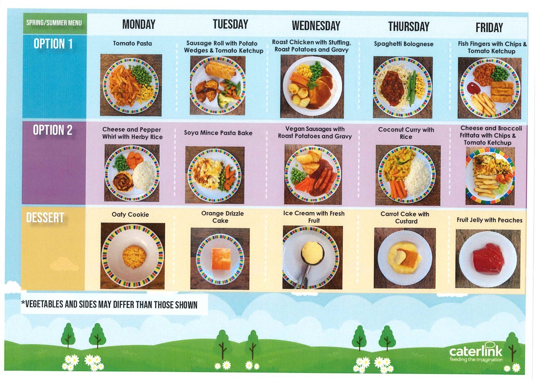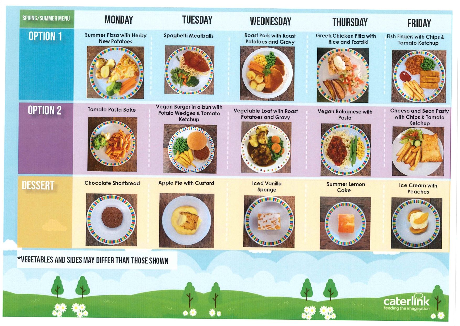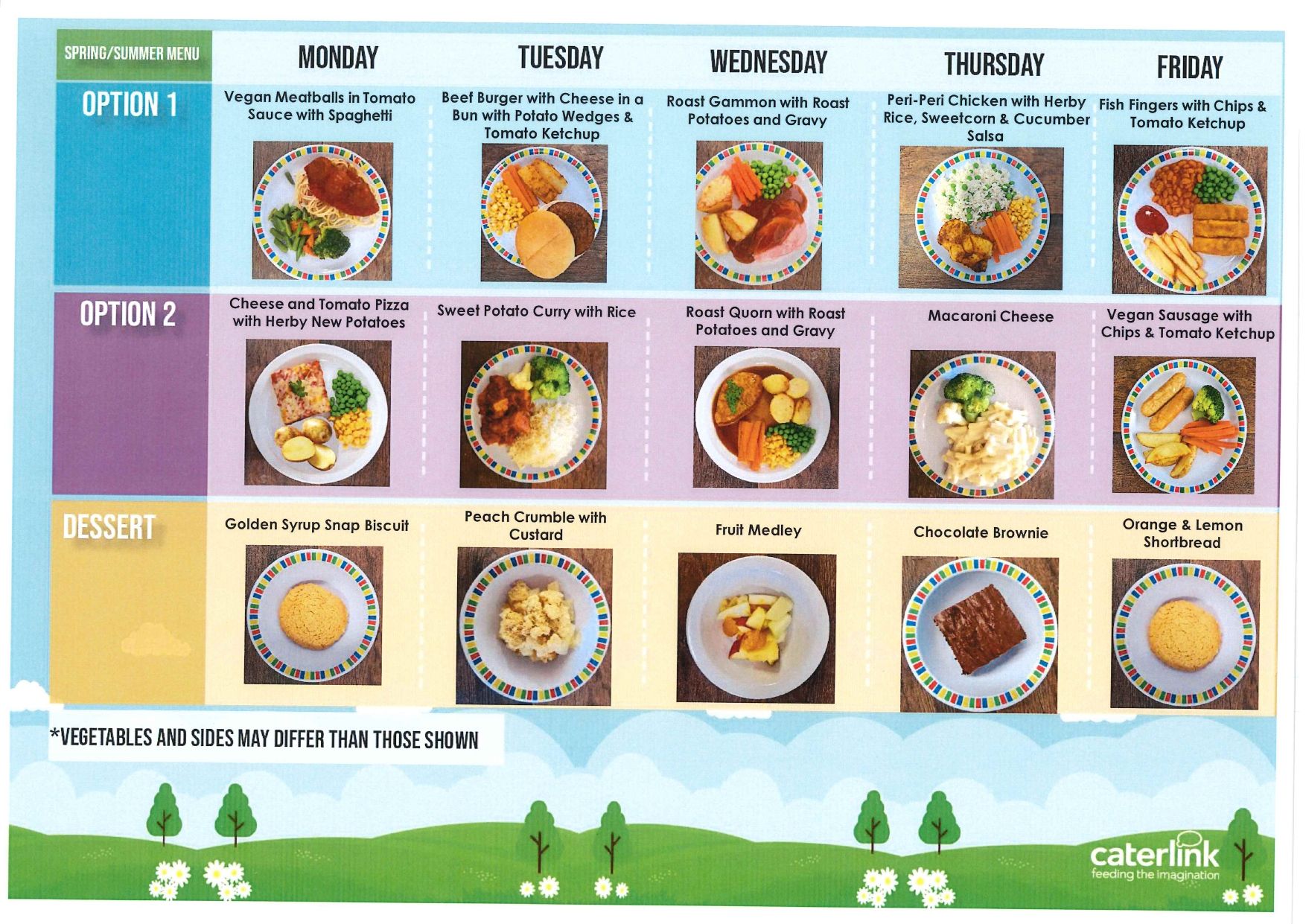 Lunches are provided by Caterlink. See below for the latest menu. Meals cost £2.95 (from 1st April 2026) via Parentpay.